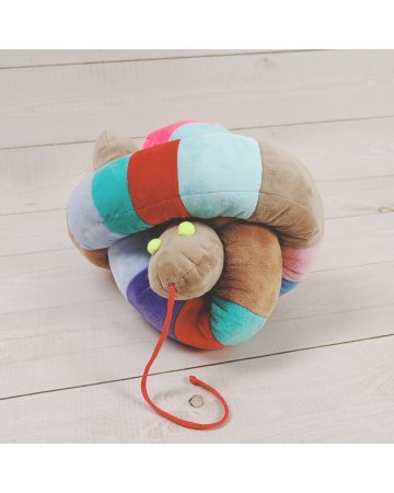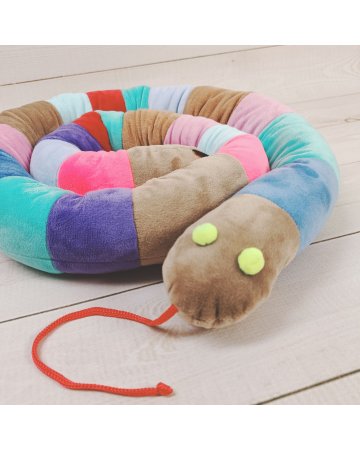 Pluszowy wąż zachwyca bogactwem barw. Każdy segment szyty jest z innego koloru materiału, co tworzy efektowną, kolorową kompozycję.